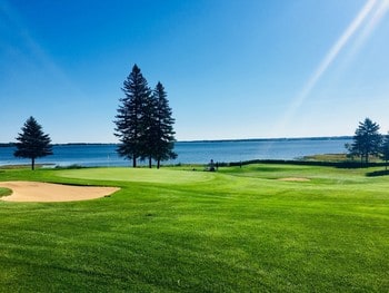From the bar, you get a wonderful view on the 18th hole as well as Bathurst's harbor.
